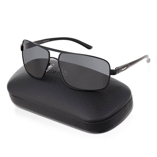 Męskie okulary przeciwsłoneczne pilotki z polaryzacją na teleskopach STP26 czarne