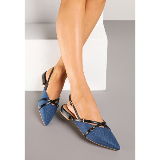 Niebieskie Sandały z Noskiem w Szpic Zdobione Tweedem i Paskami Klamrami Renee renee.pl
