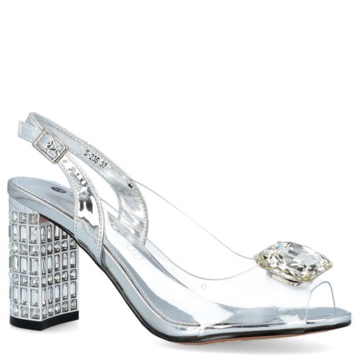 Transparentne sandały na zdobnym obcasie - SCAVIOLA S-235 SREBRNE