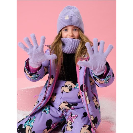 Sinsay - Komplet zimowy - czapka, szalik i rękawiczki - fioletowy - elastyczna czapka,zawijana, ciepła i miękka,ozdobna, drobna naszywka na przodzie