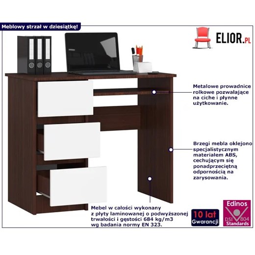 Nowoczesne biurko z szufladami wenge + biały - Miren 3X Elior Edinos.pl