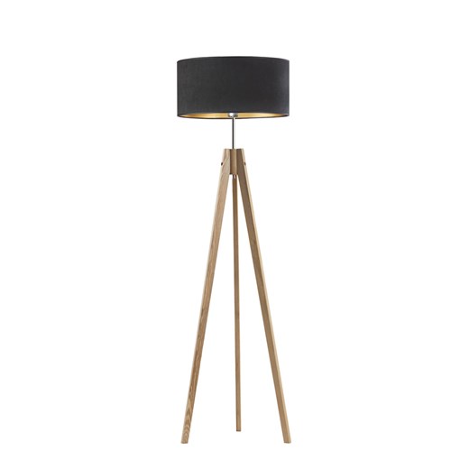 Drewniana lampa podłogowa z welurowym kloszem HAITI VELUR