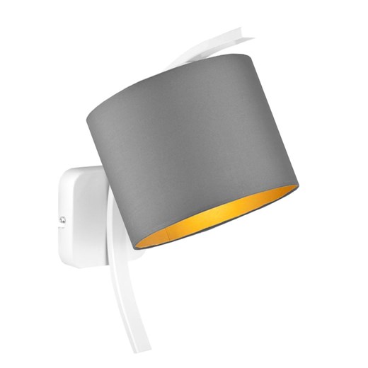 Biały kinkiet ścienny z szarym abażurem ze złotym wnętrzem