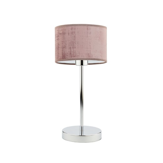 Chromowana lampka stołowa do salonu NICEA VELUR z welurowym abażurem w kolorze pudrowego różu