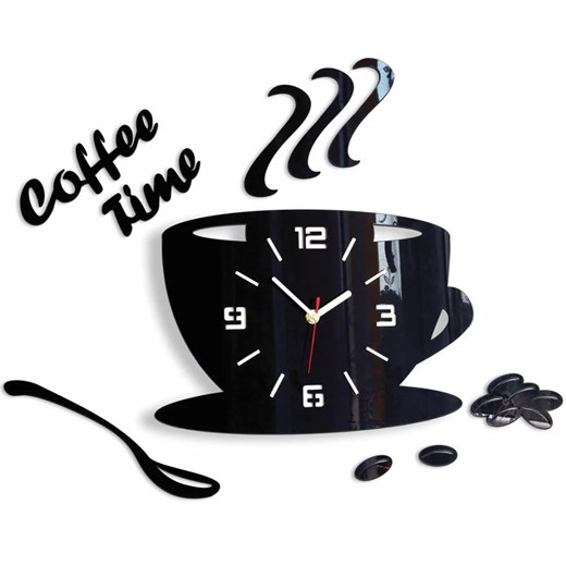 Ścienny Zegar Czarny 3D W Kształcie Filiżanki M0-D56