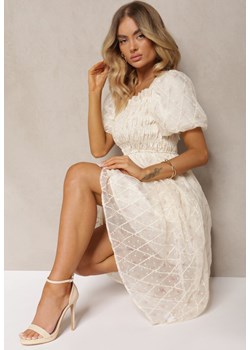 169.99 złSukienka Renee maxi beżowa wiosenna z dekoltem typu hiszpanka z krótkim rękawem na randkę