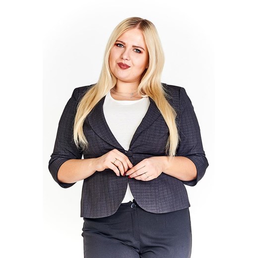 Szykuje się jakaś specjalna okazja, impreza rodzinna, wesele? Piękny żakiet -klasyka elegancji. Z charakterystycznym, kontrastowym wzorem. Kołnierz, mankiety i pas w geometryczny deseń. Bardzo elegancki wizytowy styl. Zapinany na dwa guziczki. Żakiet to Efektowny element naszej garderoby. W połączeniu z sukienką lub spódnicą możesz stworzyć szykowny powiew stylizacji na wiosnę/lato.