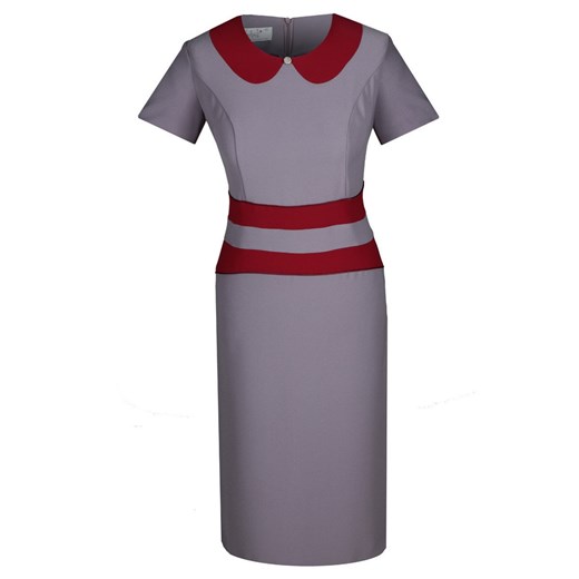 Prosta elegancka sukienka uszyta z najwyższej jakości lekko rozciągliwej tkaniny. W pastelowych zestawach kolorystycznych do wyboru. Delikatny okrągły dekolt imitujący kołnierz ze srebrnym guziczkiem w formie dekoracji. Rękaw krótki. Cięcie francuskie plus odcięcie w talii sprawiają, że sylwetka wygląda na szczuplejszą i smuklejszą. Z tyłu suwak i dyskretny rozporek. Materiał jest miły w dotyku i nie ulega gnieceniu. Sukienka idealna dla dojrzałych kobiet. Idealnie kryje mankamenty figury. W zależności od dodatków sprawdzi się zarówno w dzień jak i na wieczorne wyjścia.