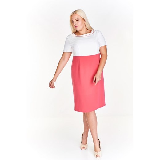 Sukienka różowa Fokus elegancka z okrągłym dekoltem dla puszystych