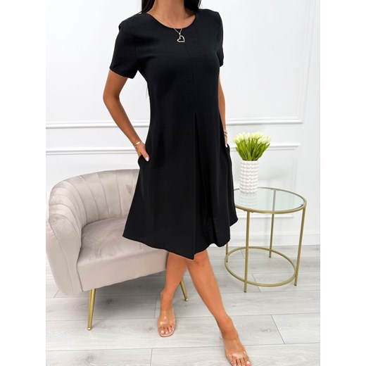 Klasyczna sukienka rozszerzana ku dołowi. Posiada krótkie rękawki oraz kieszonki, dzięki którym sukienka świetnie sprawdzi się zarówno na co dzień, jak i na różne uroczystości. Jednolita kolorystyka oraz lekki, przyjemny materiał wykonany z wiskozy czynią ją niezwykle praktyczną. Jest to idealna propozycja do pracy, na spacer czy spotkanie ze znajomymi.