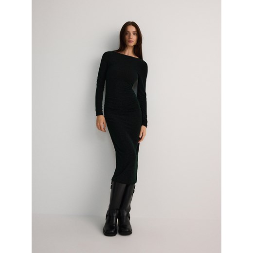 Reserved - Sukienka midi z błyszczącymi drobinkami - zielony