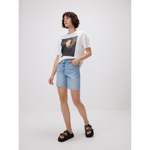 Reserved - Jeansowe szorty z asymetrycznym zapięciem - niebieski