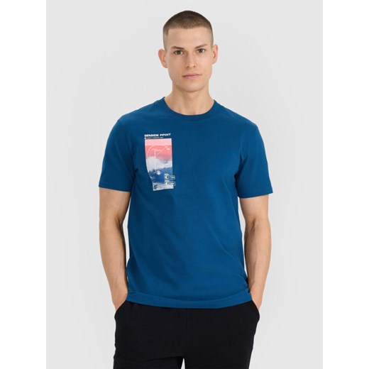 Męski t-shirt z nadrukiem 4F 4FRSS25TTSHM2997 - turkusowy Sportstylestory.com