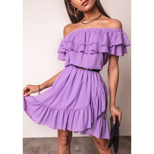 Sukienka Latika z dekoltem typu hiszpanka mini z krótkim rękawem