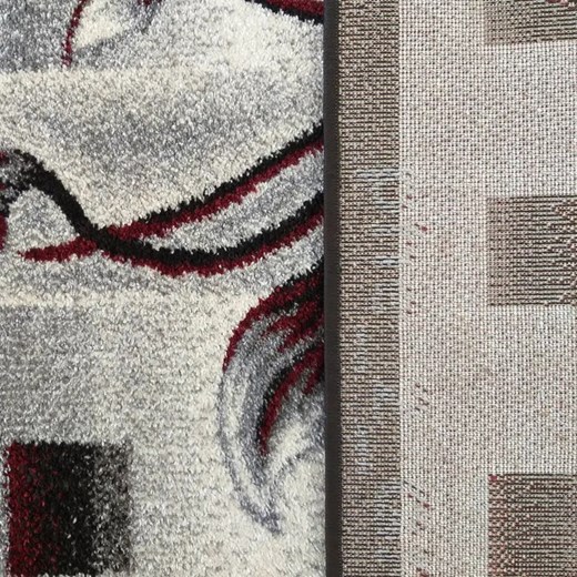 Szaro-czerwony dywan do salonu w kwiaty P6-A28