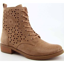 JEZZI ASA62-116 Botki damskie ażurowe płaski obcas zamszowe beżowe Jezzi senity.pl