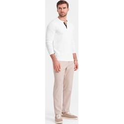 Longsleeve męski z dekoltem HENLEY - biały V10 OM-LSCL-0107 ombre