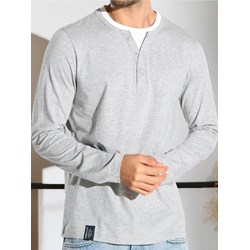 Longsleeve męski z dekoltem HENLEY - jasnoszary V6 OM-LSCL-0107 ombre
