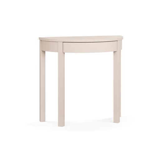 Toaletka Simple to niewielki mebel o wszechstronnym zastosowaniu. Jej blat ma kształt półokręgu, dzięki czemu można ją wygodnie ustawić przy ścianie. Zawiera małą szufladę do przechowywania podręcznych przedmiotów. Toaletkę można łatwo dopasować do aranżacji – jest dostępna w 4 kolorach do wyboru.