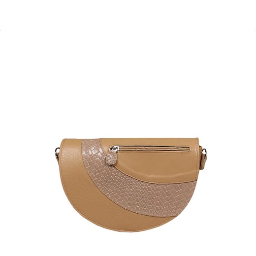 Półokrągła torebka na ramię beżowa Niewielkich rozmiarów brązowa damska torebka na ramię. Polski produkt Handmade Podstawa torebki jest beżowa wykonana ze skóry naturalnej . Klapa: skóra licowa w kolorze naturalnej skóry beżowej Na klapie znajduje się ozdobna wstawka ze skóry naturalnej ozdobnej w pleciony wzór. Wnętrze: skórzana kieszeń na suwak, kieszonka na telefon, kieszonka na bilet miesięczny, smycz na klucze, podszewka. Wygodna kieszonka pod na klapie torebki zasuwana na zamek. Półokrągła torebka na ramię od Słonia Torbalskiego, ma oryginalny ale i bardzo uniwersalny wzór, świetnie będzie się prezentowała zarówno do zwiewnej sukienki jak i do jeansów.