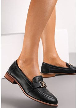 Czarne Mokasyny ze Skóry Naturalnej z Klamerką i Perforacją Rakke