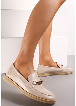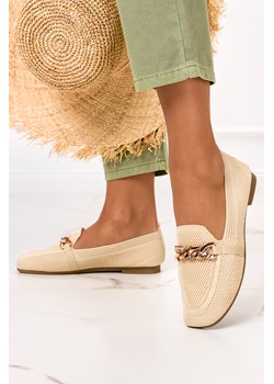 Beżowe mokasyny Casu ze złotym łańcuchem 8060-8