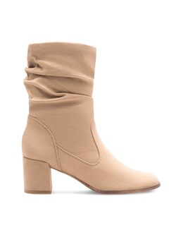 104.99 złBeżowe Botki z Imitacji Zamszu z Marszczoną Cholewką do Połowy Łydki na Niskim Obcasie Typu Kaczuszka Zakera