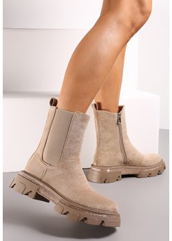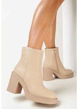 150.49 złBeżowe Botki Sztyblety na Grubej Podeszwie z Wstawką w Cyrkonie Alimione