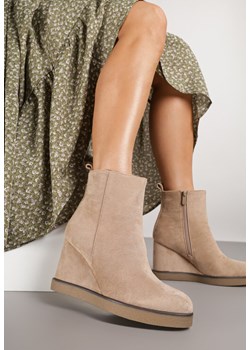 Ciemnobeżowe Botki na Koturnie Selleri