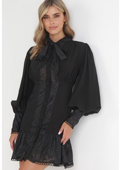 119.99 złCzarna Koszulowa Sukienka Mini z Ozdobnym Wiązaniem i Szerokimi Mankietami Jeilana