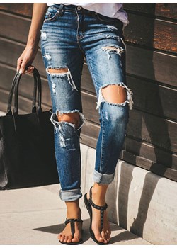Długa nogawka obcisłe wysoki stan jednolite przetarcia bez wzoru typ boyfriend jeans casual niebieski spodnie Cikelly (S)