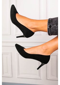 Czarne szpilki czółenka skórzane zamszowe Casu DS-43/1