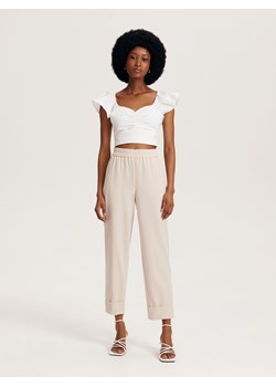 Reserved - Eleganckie spodnie z kantem - złamana biel