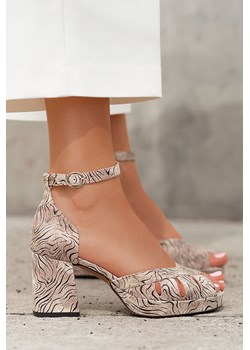 Beżowe sandały z kryształkami na ozdobnym obcasie POLSKA SKÓRA Casu 2529