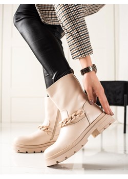Czółenka Born2be na wysokim obcasie beżowe eleganckie z klamrą