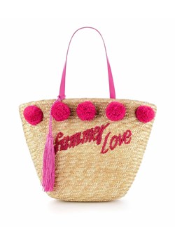 Różowa torba plażowa typu koszyk z pomponami GIAIS