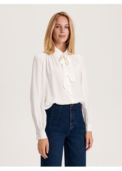 Biała satynowa bluzka z wiązaniem z tyłu Bemiko - biały