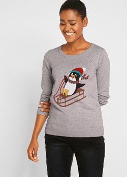 Sweter z dzianiny o splocie drobnych oczek z bożonarodzeniowym motywem