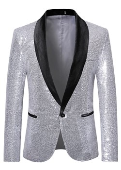 W noworoczną noc dobrze sprawdzi się garnitur smokingowy, czyli połączenie garnituru i smokingu. To niezwykle efektowna i szykowna propozycja w typowo wieczorowym wydaniu. Taką marynarkę z błyszczącymi klapami najlepiej połączyć ze śnieżnobiałą koszulą i ciemną muchą – gładką albo zdobioną delikatnym wzorem.