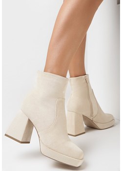 153.99 złBeżowe Botki na Geometrycznym Słupku i Platformie Darna