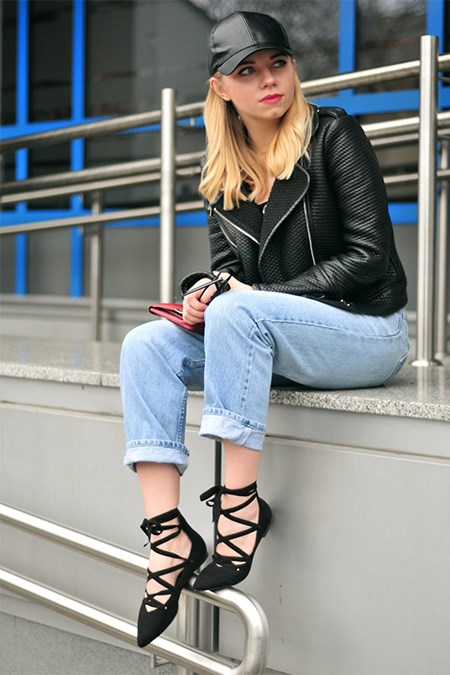Wiązane buty to wdzięczny temat do stylizacji. Trzeba tylko wiedzieć, które wybrać. Baleriny z rzemykami nie muszą być noszone wyłącznie do kobiecych czy dziewczęcych stylizacji. Jasny jeans - np. typu mom lub boyfriend zakładamy do sportowego looku. Ramoneska to podstawa garderoby, którą każda z nas powinna mieć. W wersji bardziej eleganckiej wiązane balerinki nosimy w kombinacji: sukienki odsłaniające ramiona, kapelusz i zwiewna narzutka. Gdy poszukujemy obuwia glamour, wybierzmy szpilki z rzemykami.