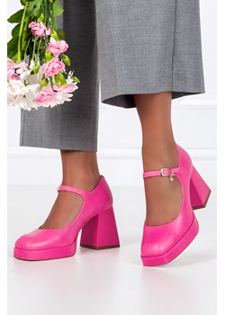348.99 złFuksjowe czółenka skórzane na klocku z paskiem ozdoba PRODUKT POLSKI Casu 2661-197