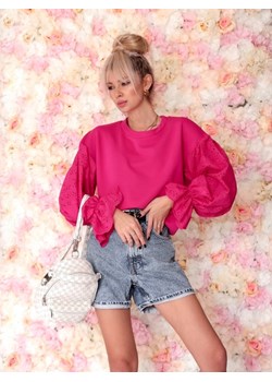 Różowa dresowa bluza bez kaptura z haftem grochy