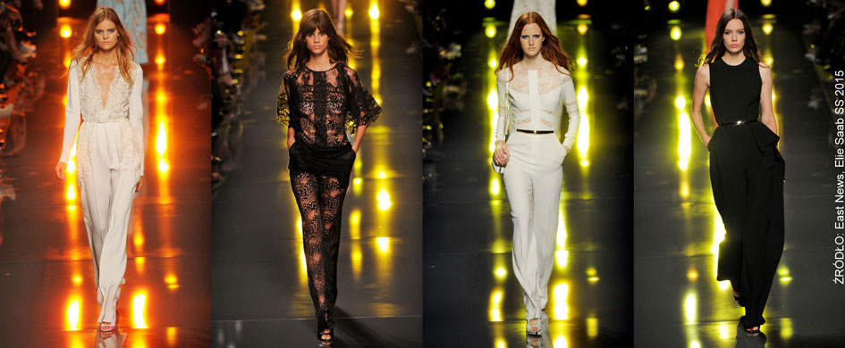 Światowi jak i polscy projektanci w nadchodzącym sezonie promują kombinzony w różnym stylu. Na pokazie Macieja Zienia oraz La Manii możemy zobaczyć propozycje inspirowane latami 70. Sama projektantka Joanna Przytakiewicz zaprezentowała się na premierze w zmysłowym kombinezonie z najnowszej kolekcji. Podobną tendencję możemy zaobserwować na pokazie Anthony Vaccarello oraz Francesco Scognamiglio. Wieczorowe propozycje obserwujemy na pokazie Balmain oraz koronkowe wydanie u Elie Saab. Ralph Lauren oraz Givenchy to kolekcja w której dominuje czerń. Sonia Rykiel oraz Guy Laroche wracają do pierwotnej funkcji, tworząc propozycje inspirowane roboczymi kombinezonami. Jean Paul Gaultier podszedł do swojej ostatniej w karierze kolekcji pret-a-porter z nutką humoru. Jego pokaz był wielkim show, którego motywem przewodnim były wybory miss. Na wybiegu w sekcji Miss Lucha Libre, mogliśmy zobaczyć modelki w sportowych propozycjach, natomiast część Miss Le Smoking to eleganckie wydanie kombinezonów.