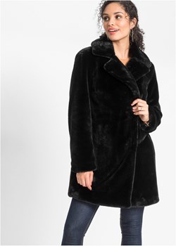 Czarny Płaszcz Futrzany z Kapturem Vimi
