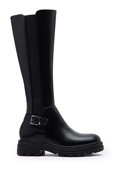 74.99 złCzarne Kozaki z Elastyczną Cholewką z Tyłu i Sprzączką Merme