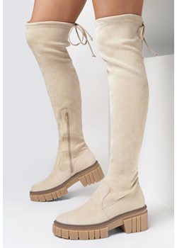 Kozaki damskie beżowe Renee z cholewką przed kolano z zamkiem jesienne eleganckie