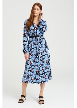 Wiskozowa sukienka midi z nadrukiem w błękitne kwiaty