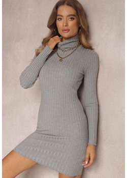 Szara Sukienka Dopasowana z Golfem Semomeda