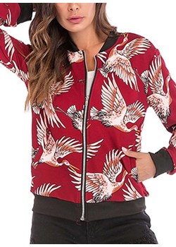 66.99 złDługi rękaw bomberka wzór modna rozpinana ściągacz jesień ptak kieszenie Birdy modna czerwony kurtka (S)